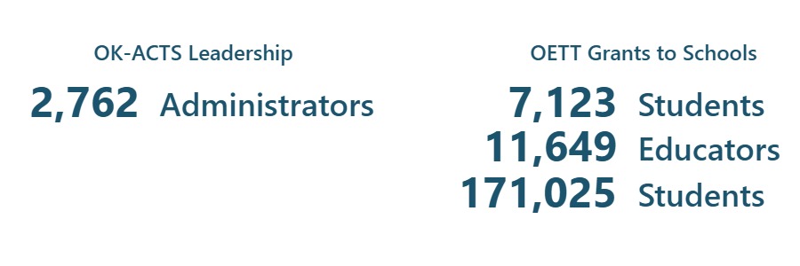 The OETT Grants to Schools program supports the development of professional learning communities and the integration of instructional technology to enhance student engagement and learning. School leaders who complete the OK-ACTS Leadership Seminar become eligible to participate in the grants to schools program, which helps schools implement effective technology-driven teaching strategies.
