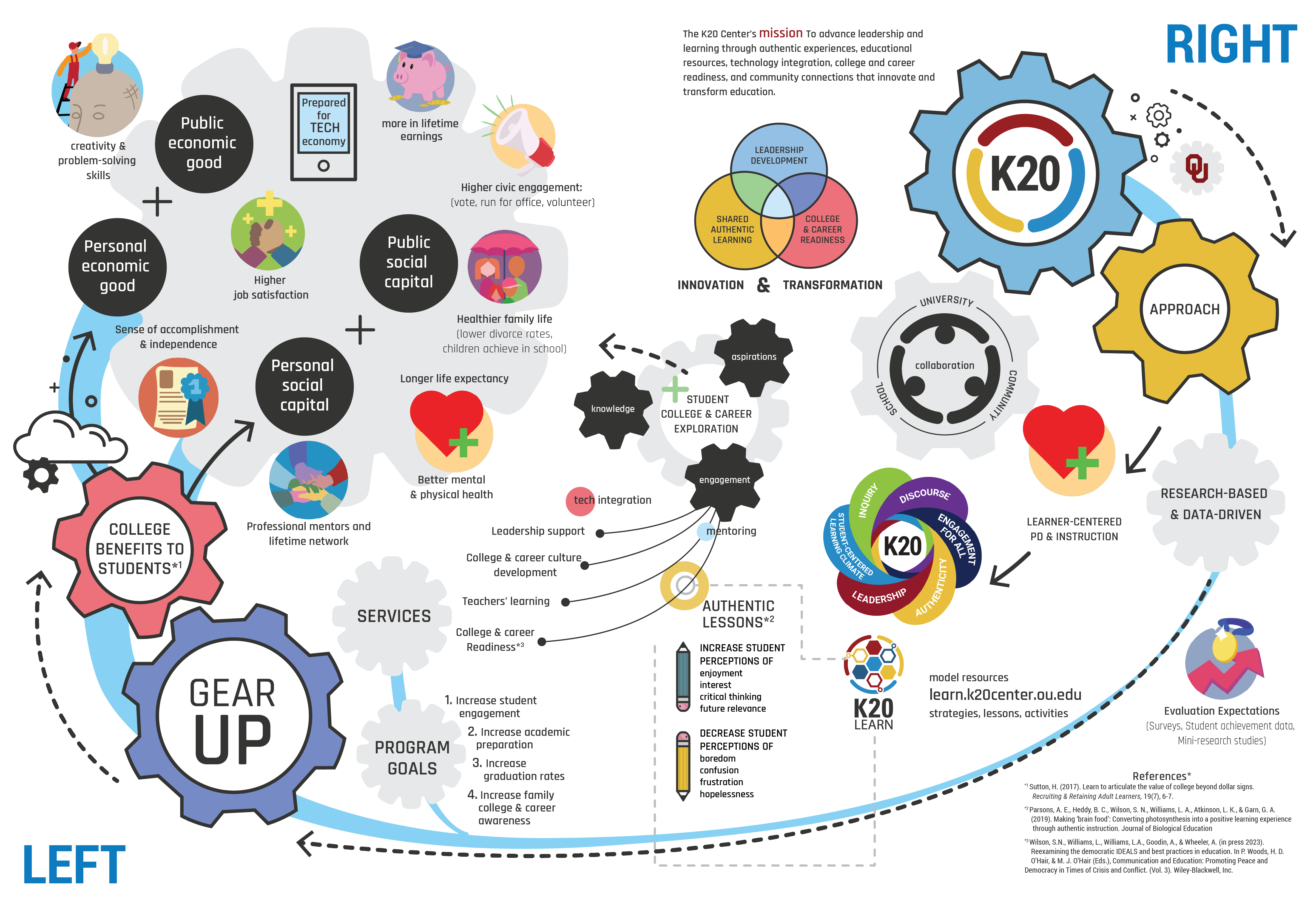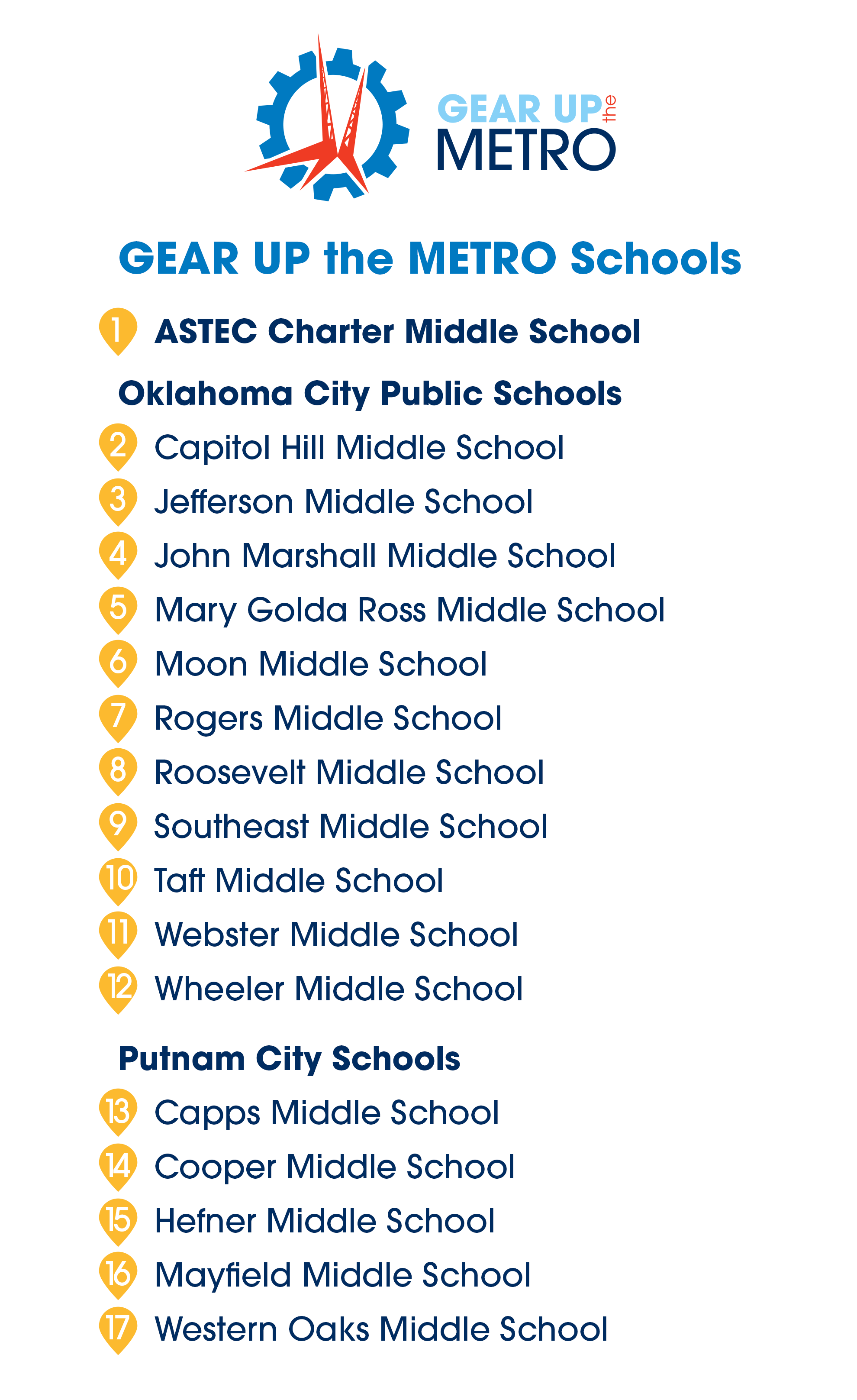 K20 GEAR UP the METRO (Maximizing Education Through Real-world Opportunities) is a partnership between the K20 Center for Educational and Community Renewal (K20) and 17 high-poverty, low-academic readiness schools located in 3 urban Oklahoma districts. The partnership seeks to impact 7,123 students through a 7-year, dual cohort project beginning with 6th and 7th grades in FY2025. The goals and objectives will guide its services to increase.